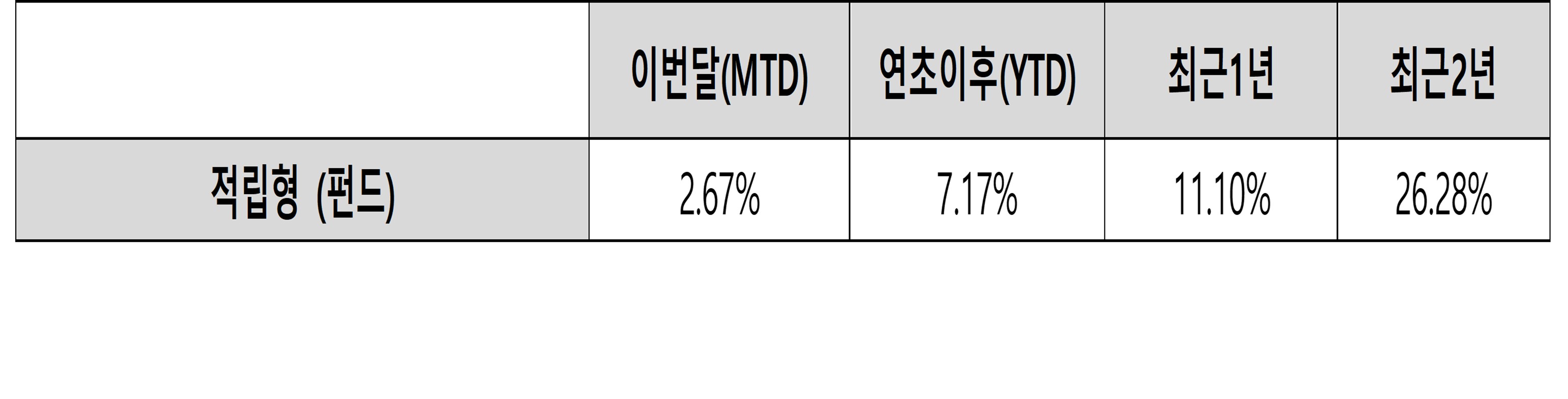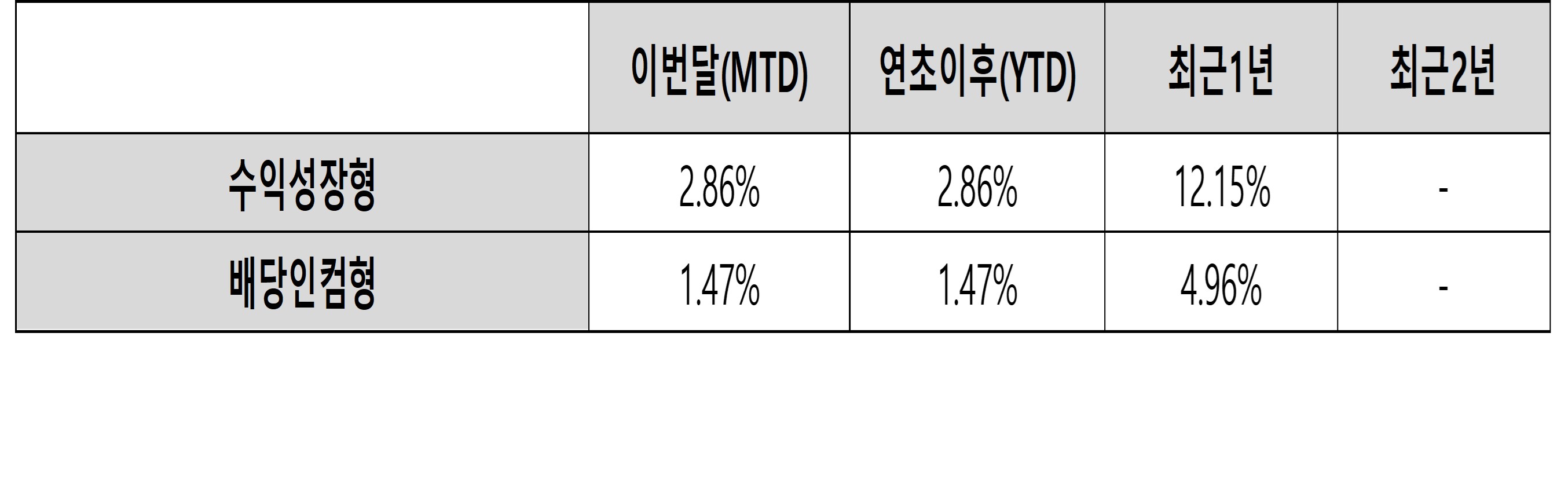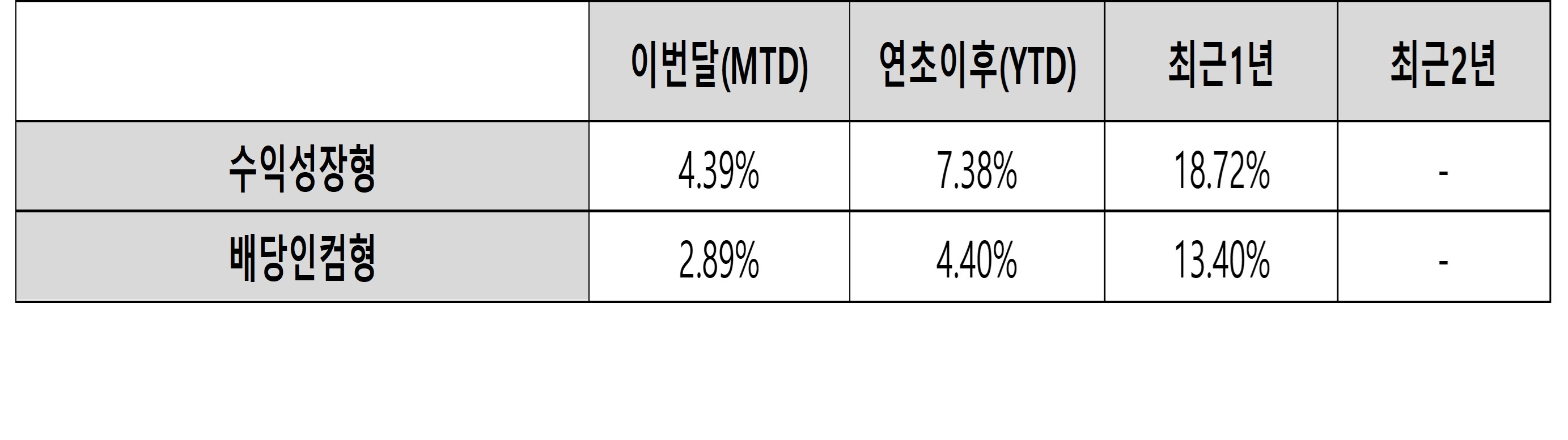 수익성장형은 국내 고배당주식 자본차익과 미국 AI전력 인프라 주식부문의 강세가 성과호조에 주로 기여