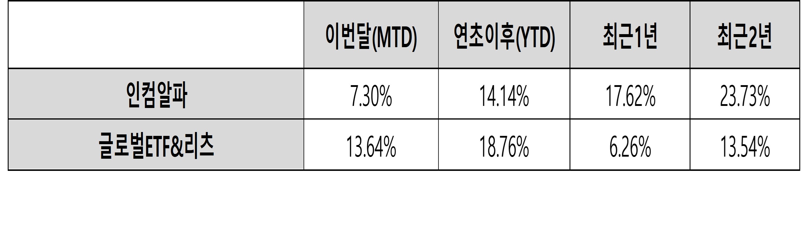장기 투자에 있어서의 안정성과 꾸준한 인컴을 기본 방향으로 하면서도 수익성장형은 자본차익에, 배당인컴형은 인컴자산 축적에 조금 더 무게를 두고 운영