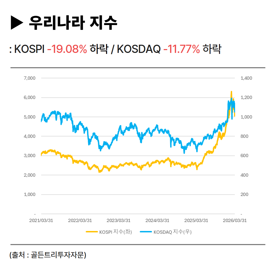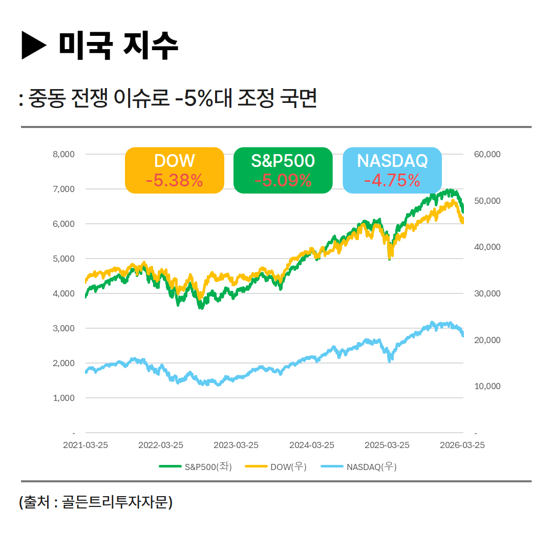 다행히 4월이 되면서 미국과 이란이 휴전과 종전에 대한 합의점을 찾아가면서 증시는 안정을 찾아가고 있습니다.