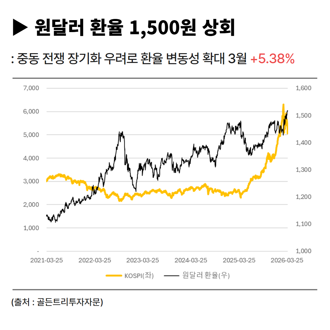 외국인 매도세와 중동전쟁 이슈로 환율은 1,500원을 상회했습니다.