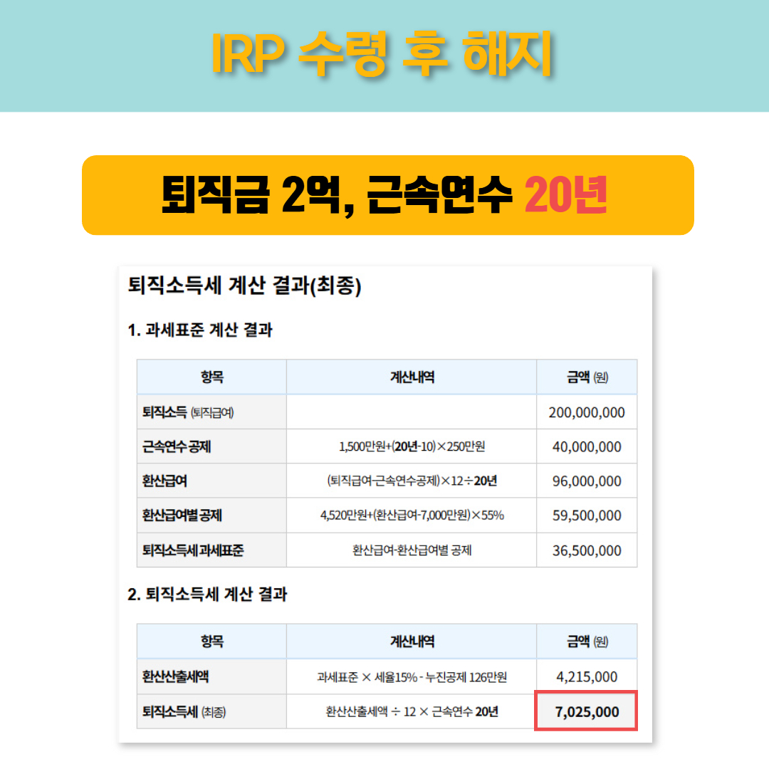 금액을 통해 운용할 수 있으며, 인출 시점까지 세금이 이연되고 다양한 세제 혜택을 제공합니다. 하지만 이 자금을 해지해 일시금으로 인출할지, 아니면 장기 운용해