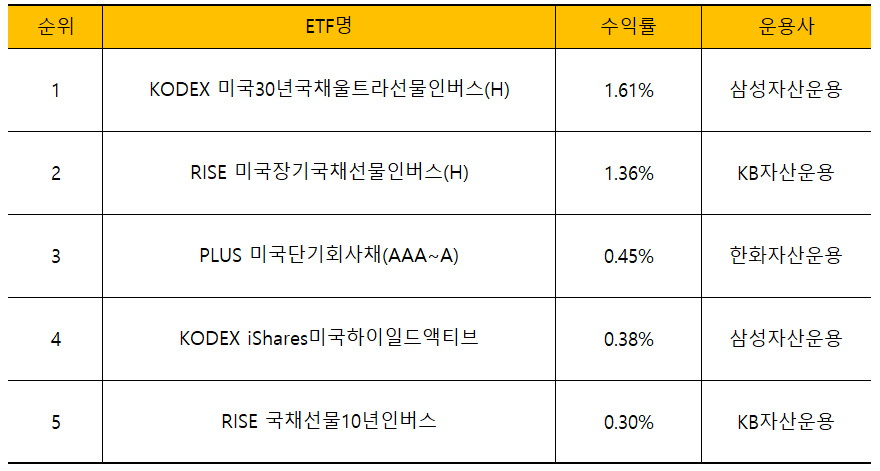 인버스 채권 ETF과 상위 1, 2위를 차지했습니다.