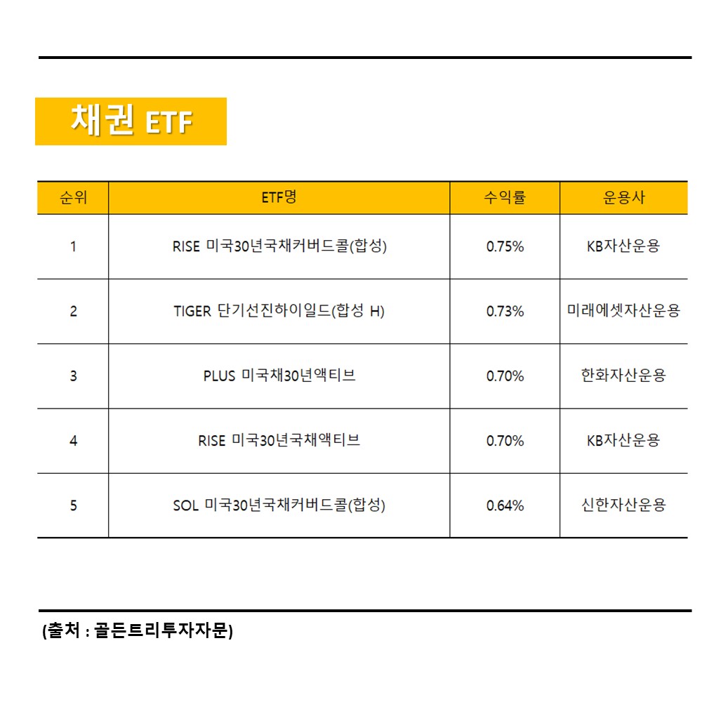 30년 국채 위주로 수익률이 발생한 한 주였습니다.