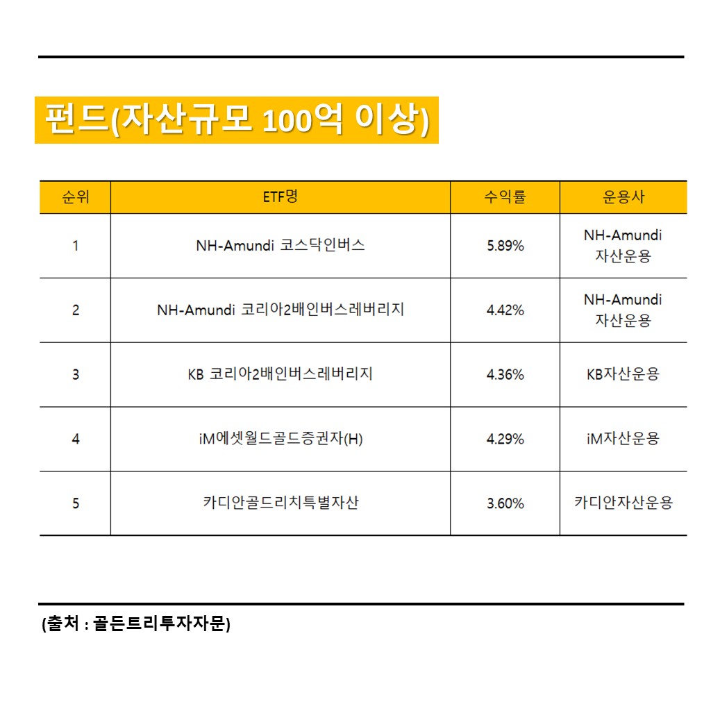 3. 주간 펀드 수익률 상위 TOP5(100억 이상)