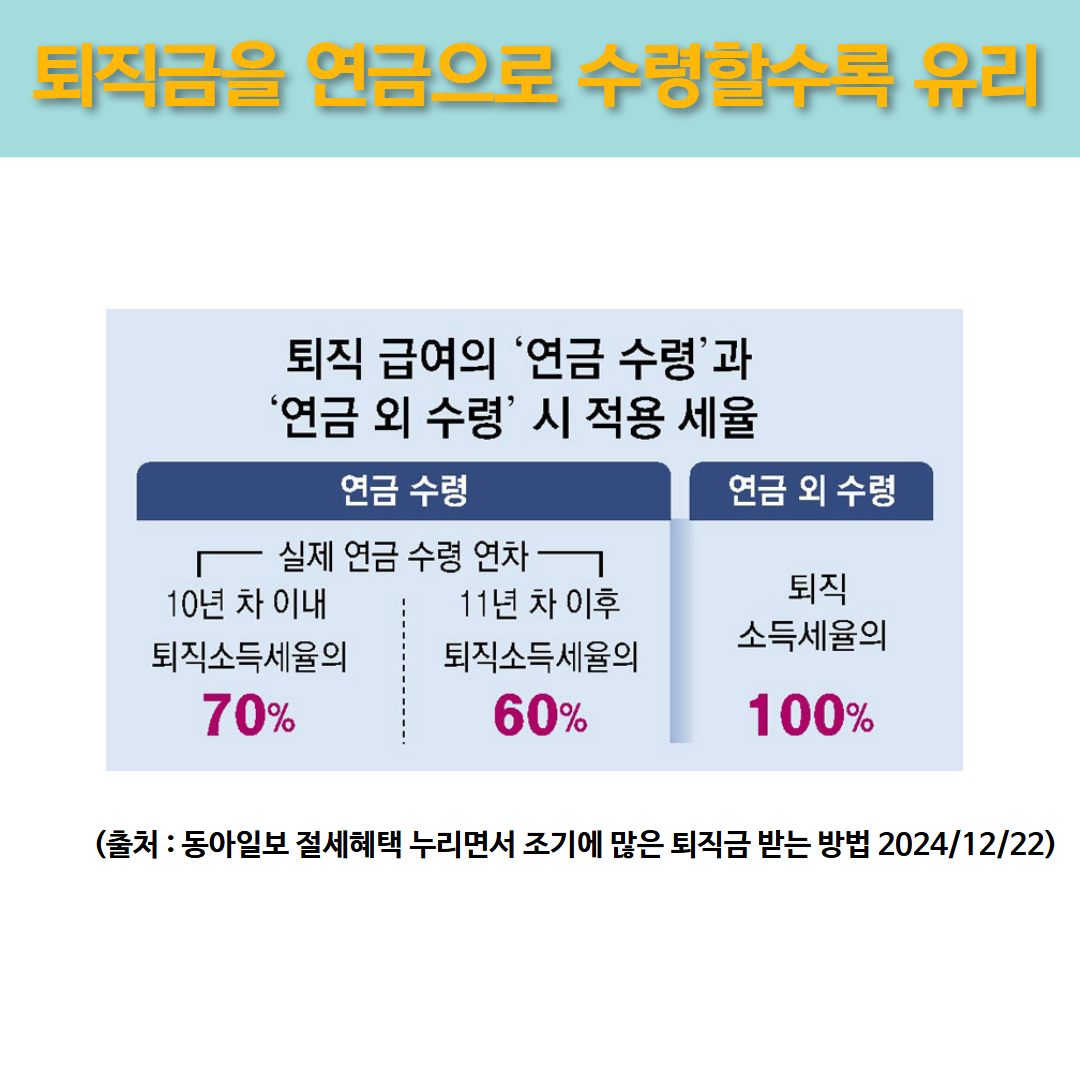 아닌 세금감면 없이 퇴직소득세 100%로 과세됩니다.