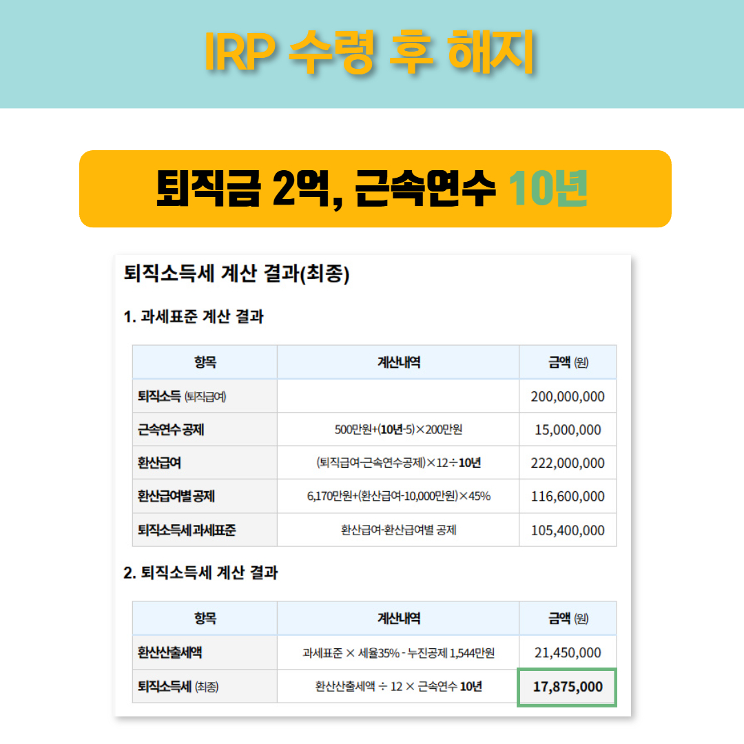 반면 이 금액을 IRP를 통해 연금으로 분할 수령하면,