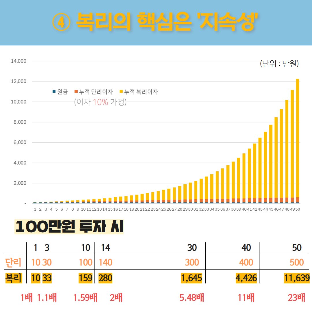 자산 배분은 단지 위험을 분산하는 기술이 아닙니다. 시간이 흐를수록 복리(Compound)라는 강력한 엔진과 결합해 눈덩이처럼 커지는 ‘지속 가능한 성장’을 만들어냅니다.